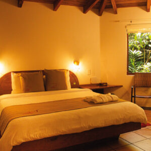 Vive la experiencia de lujo y serenidad en nuestra Junior Suite Doble, diseñada especialmente para quienes buscan confort y contacto con la naturaleza. Esta suite, equipada con una cama King y una terraza privada, es perfecta para relajarte mientras disfrutas de la tranquilidad del entorno. Desde la comodidad de tu ventana, podrás observar aves exóticas y especies únicas que habitan en la región, brindándote momentos de conexión con la biodiversidad. Ideal para parejas, eco-turistas y viajeros de bienestar que valoran la privacidad y un ambiente sofisticado.