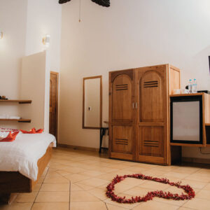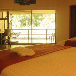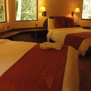 Perfecta para grupos de amigos o familias maduras, la Junior Suite Cuádruple ofrece dos amplias camas Queen y una atmósfera de comodidad pensada para compartir experiencias inolvidables. Relájate en la terraza privada mientras observas el espectáculo natural de aves y fauna local desde tu ventana. Diseñada para quienes buscan una combinación de lujo, espacio y contacto directo con la naturaleza, esta suite es ideal para jubilados, eco-turistas y viajeros de bienestar que desean disfrutar de cada detalle de su estancia.
